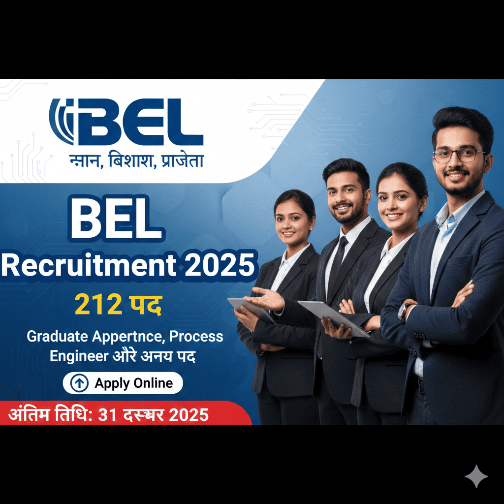 BEL Recruitment 2025 – Apply for 212 Graduate Apprentice, Process Engineer and Various Posts अगर आप इंजीनियरिंग क्षेत्र में सरकारी नौकरी (Sarkari Naukri) की तलाश कर रहे हैं, तो Bharat Electronics Limited 2025 (BEL) आपके लिए सुनहरा मौका लेकर आया है। रक्षा मंत्रालय के अधीन आने वाली इस नवरत्न कंपनी ने हाल ही में 212
